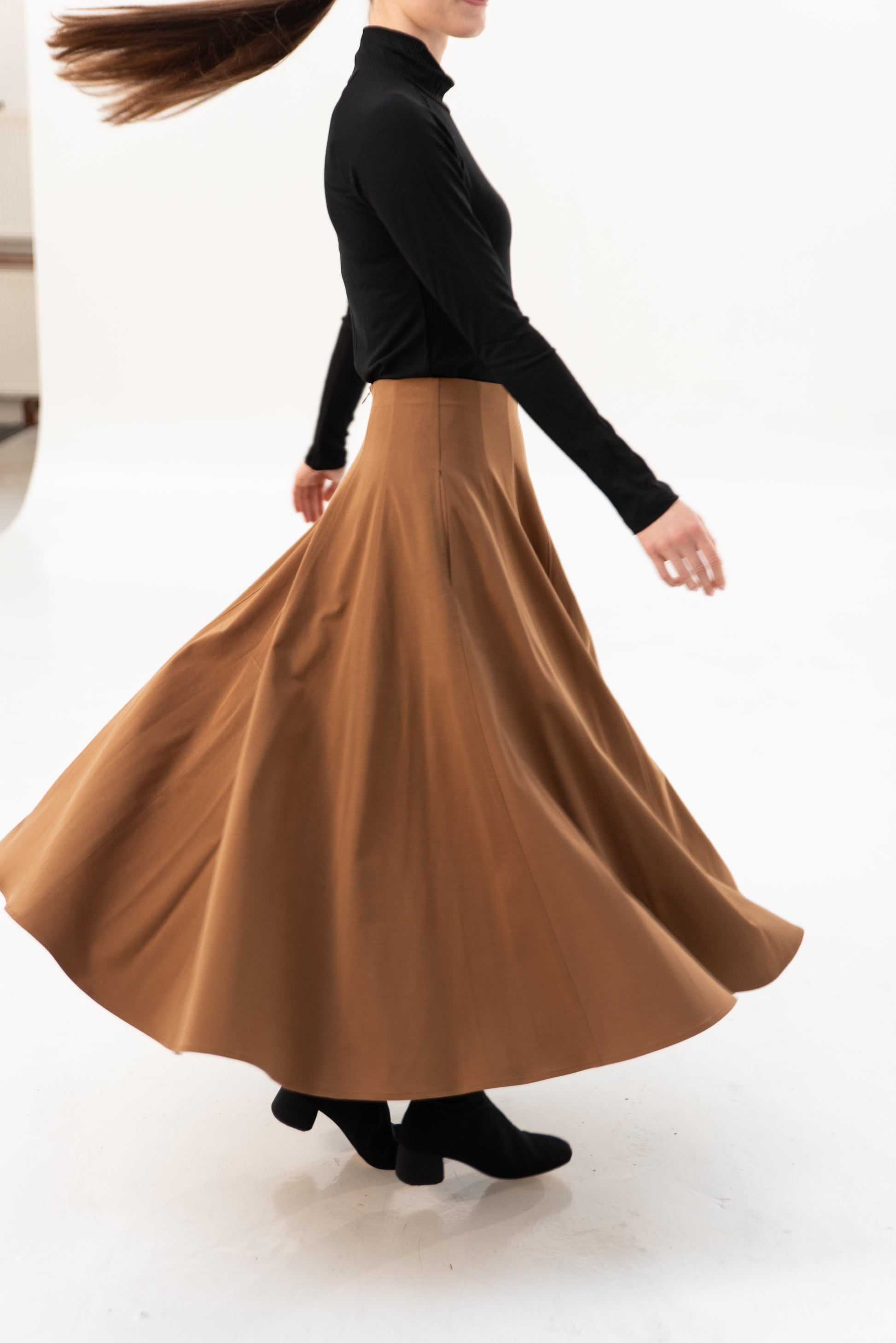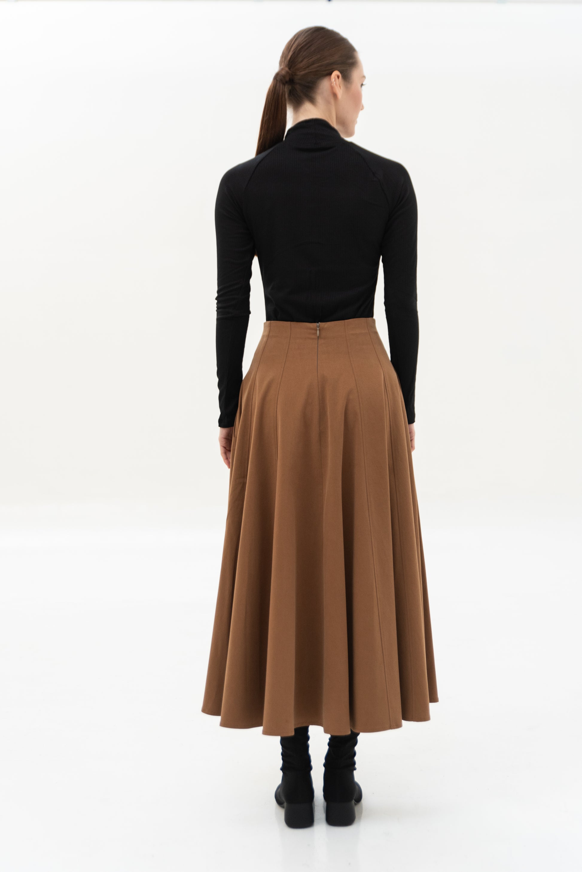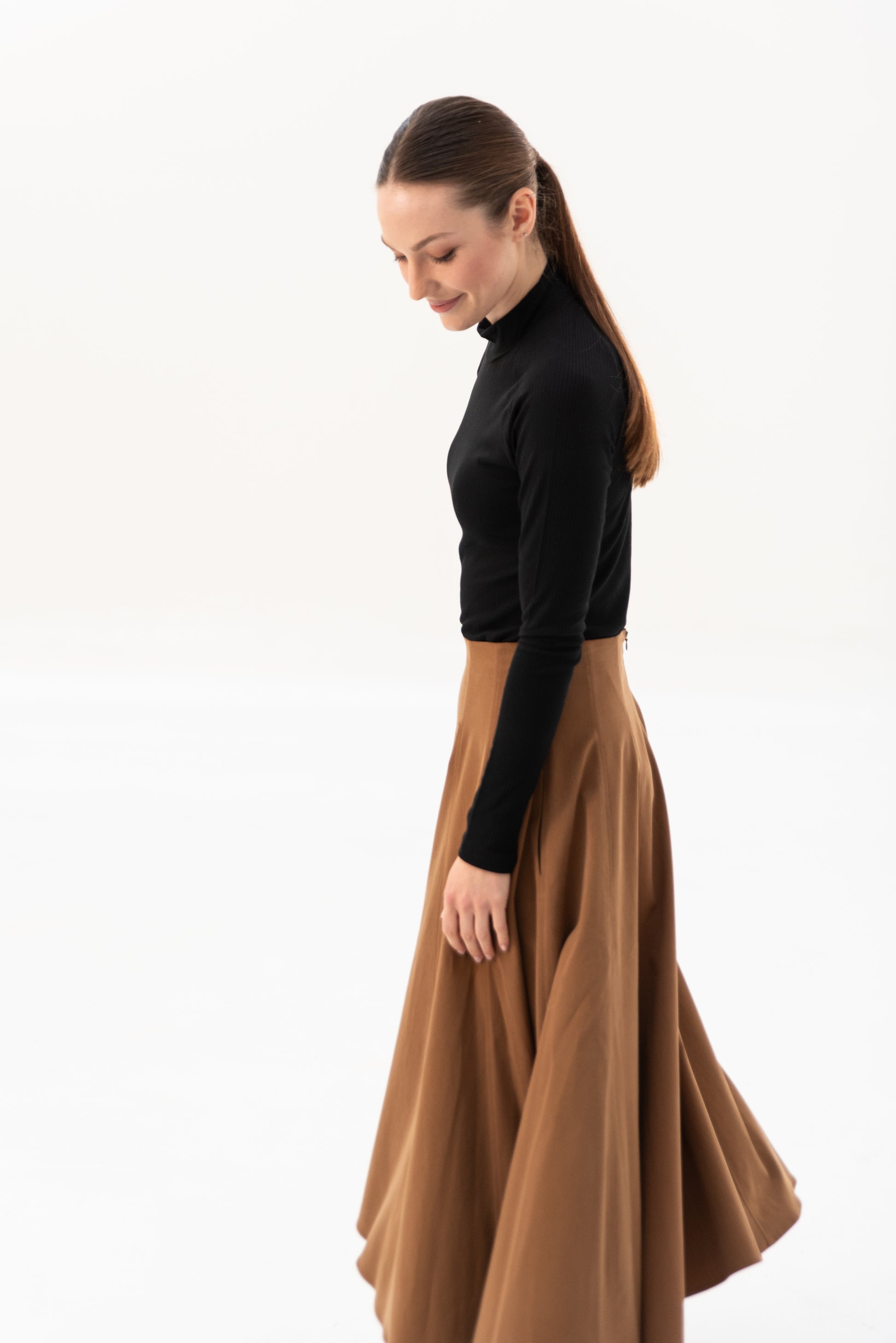 Dílová vypasovaná sukně v midi délce ze směsi tencelu a bavlny vyšší gramáže. Sukně má kapsy a je vypodšitá. Zapíná se na zip na zadním díle. Skvěle se kombinuje s našemi basic roláčky <3