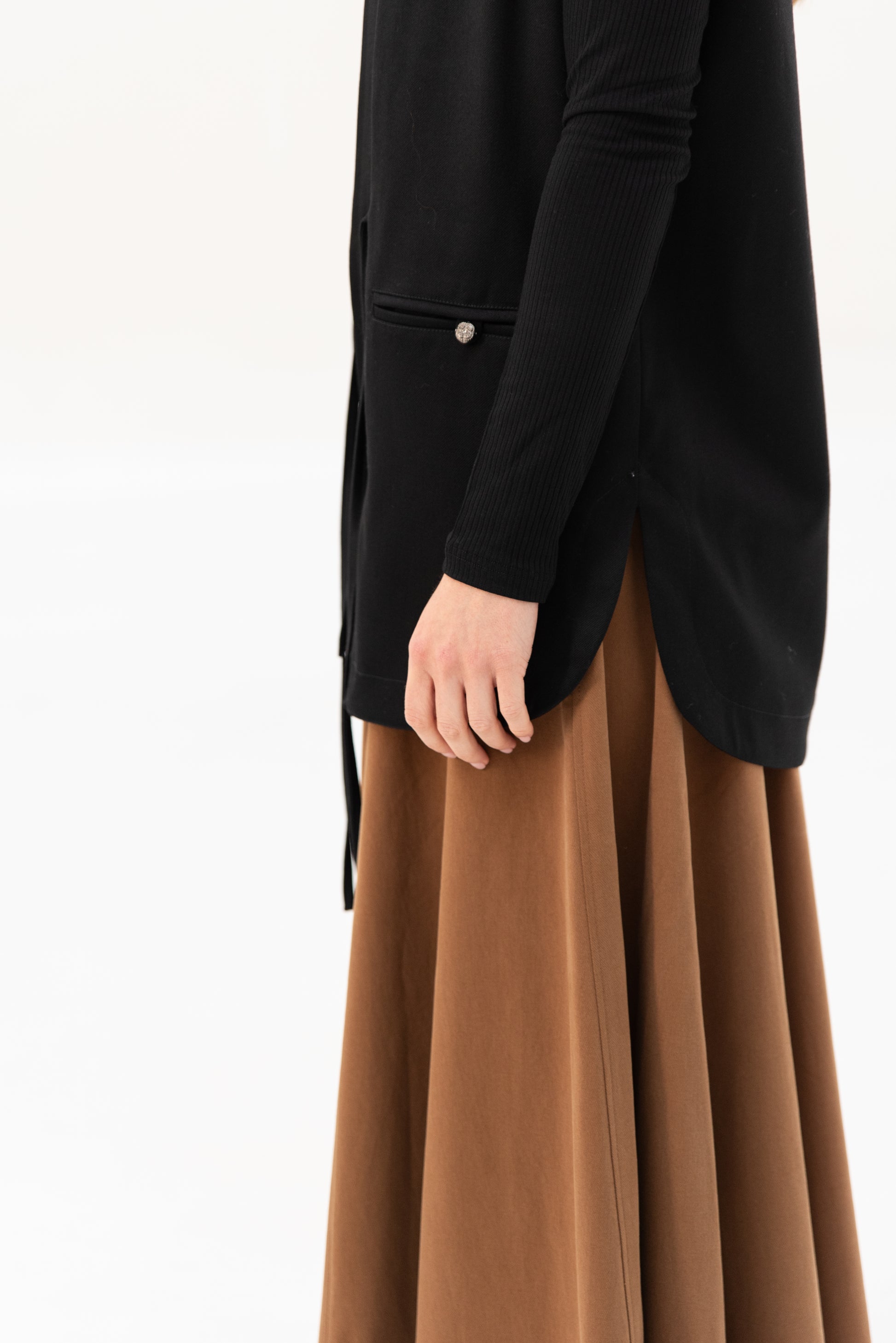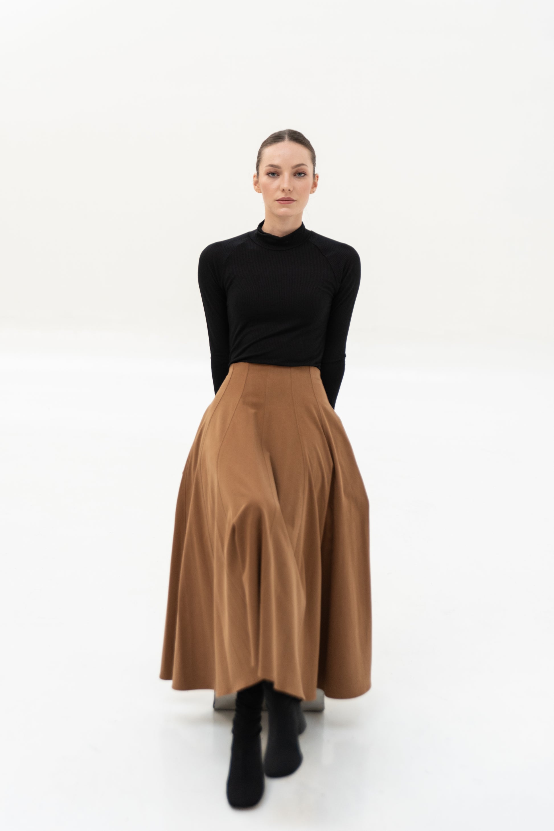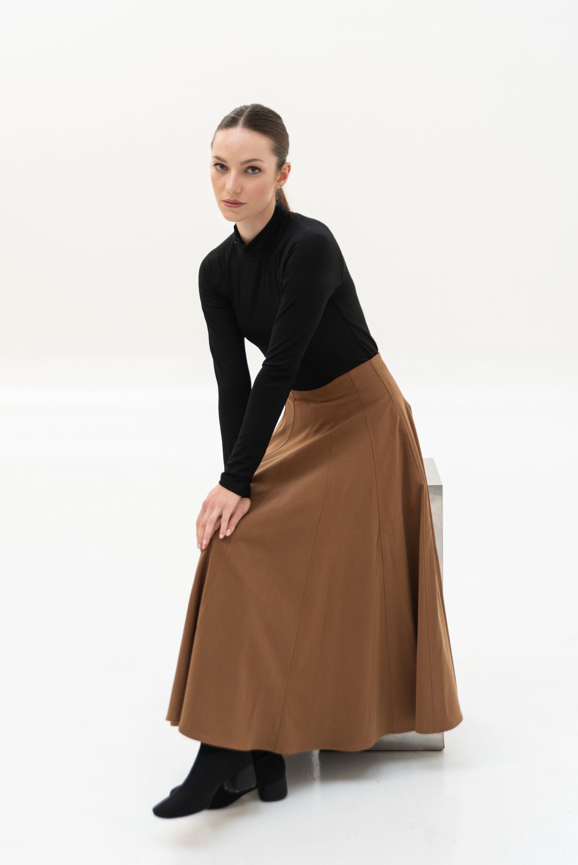 Dílová vypasovaná sukně v midi délce ze směsi tencelu a bavlny vyšší gramáže. Sukně má kapsy a je vypodšitá. Zapíná se na zip na zadním díle. Skvěle se kombinuje s našemi basic roláčky <3